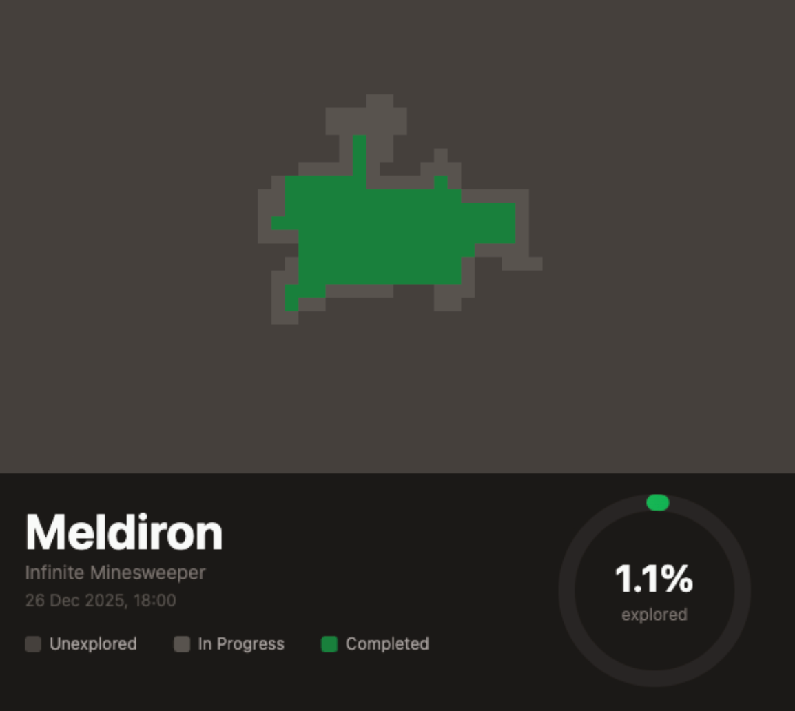 Explore an endless grid, flag mines, complete sectors, and watch your territory grow.